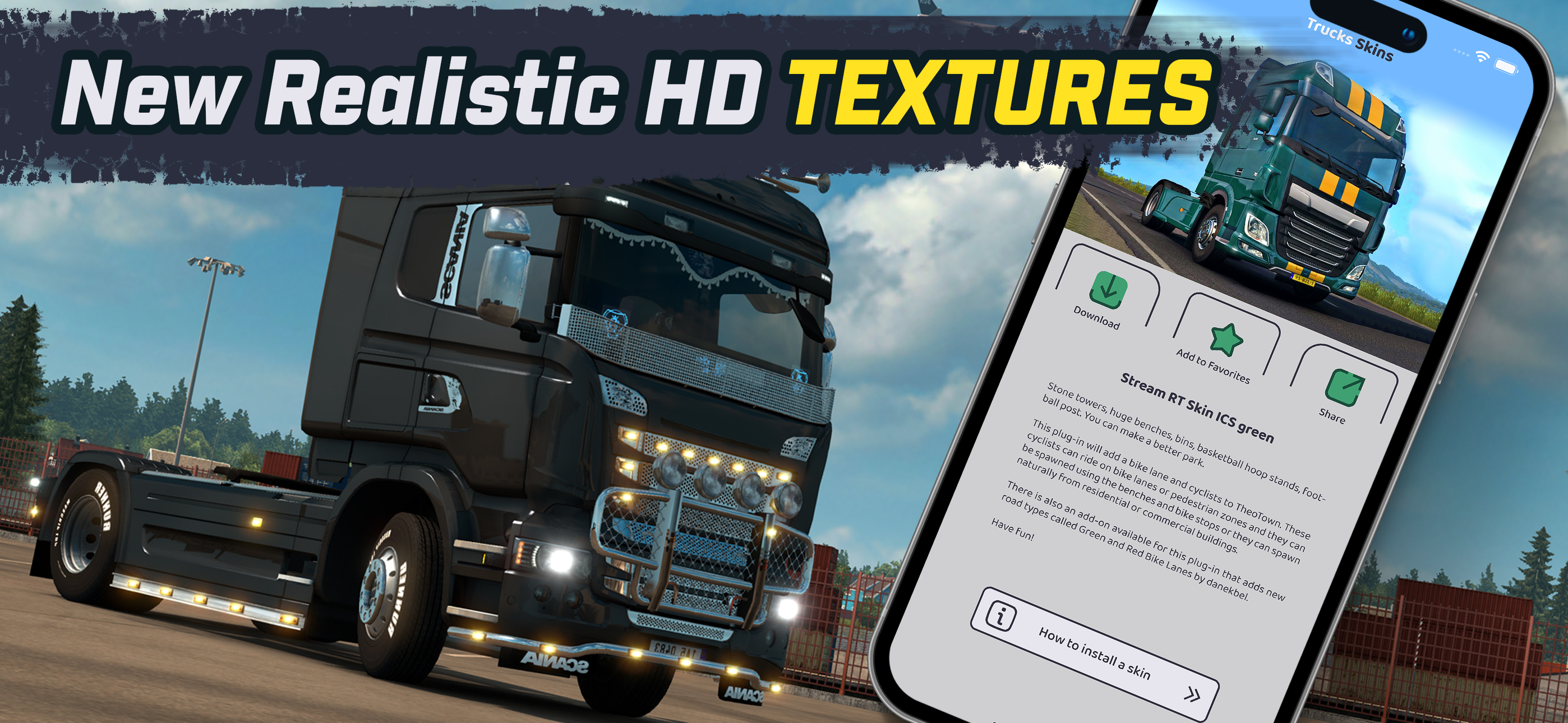 Our app allows truck driving enthusiasts to customize their virtual trucks in TOE3. Large collection of high-quality skins made especially for trucks and trailers. With just a few taps you can browse, preview, and apply your favorite designs, making your truck stand out. Featuring intensive driving experience with the most realistic truck physics.